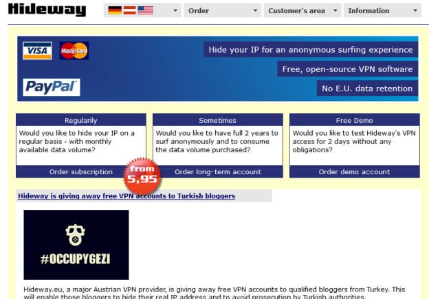 TrafficPrivacy 是 TorrentPrivacy 的衍生产品。Hideway 在美国设有 加速器 服务器。